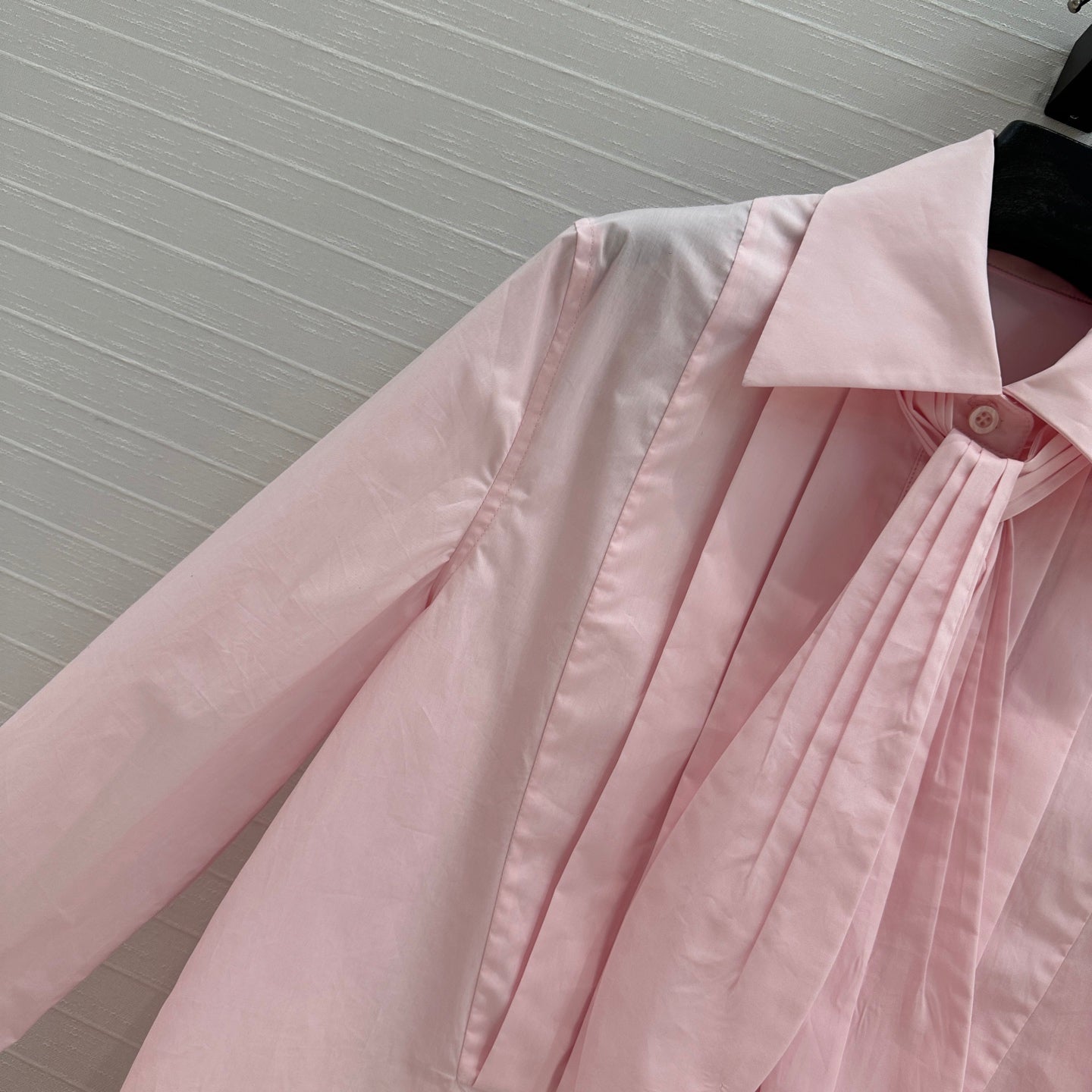 Loewe 25 Pleated Flower Knot Shirt Pink Cotton