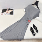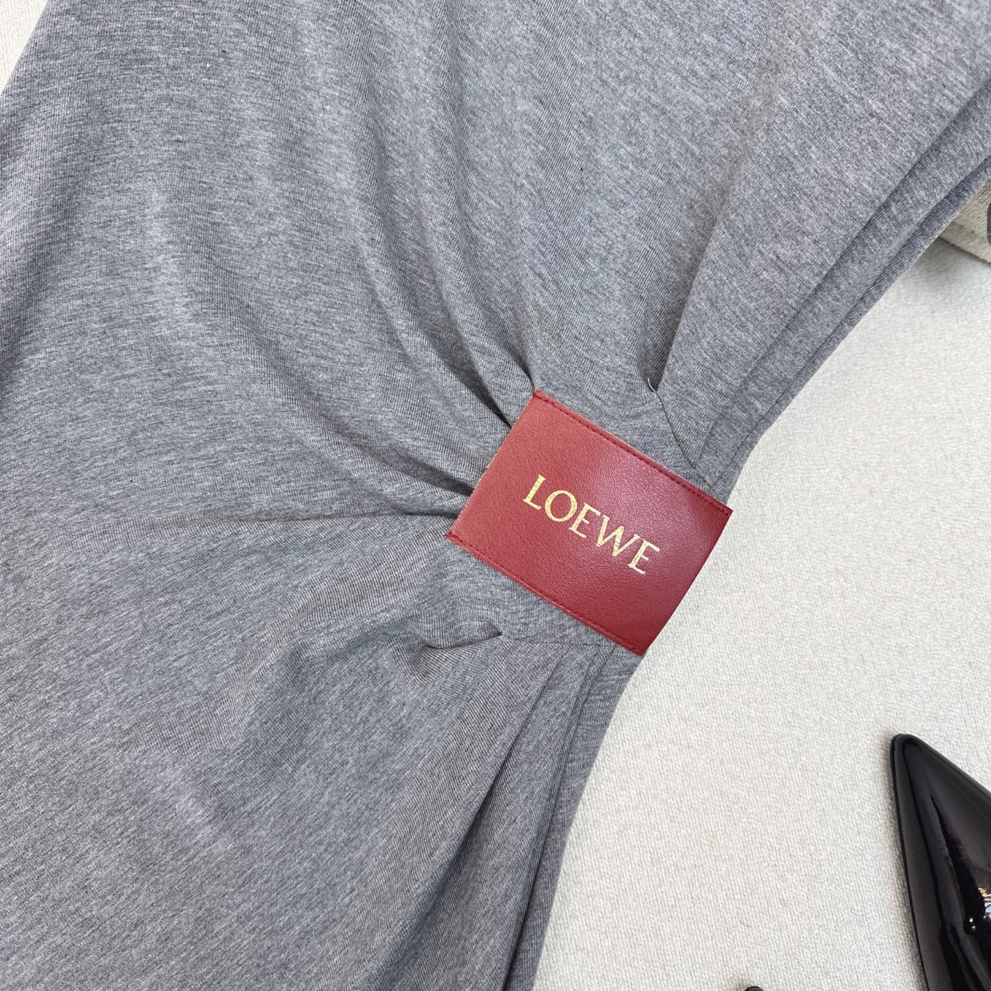 Loewe 25 Pleated Short-sleeved Dress Gray Cotton