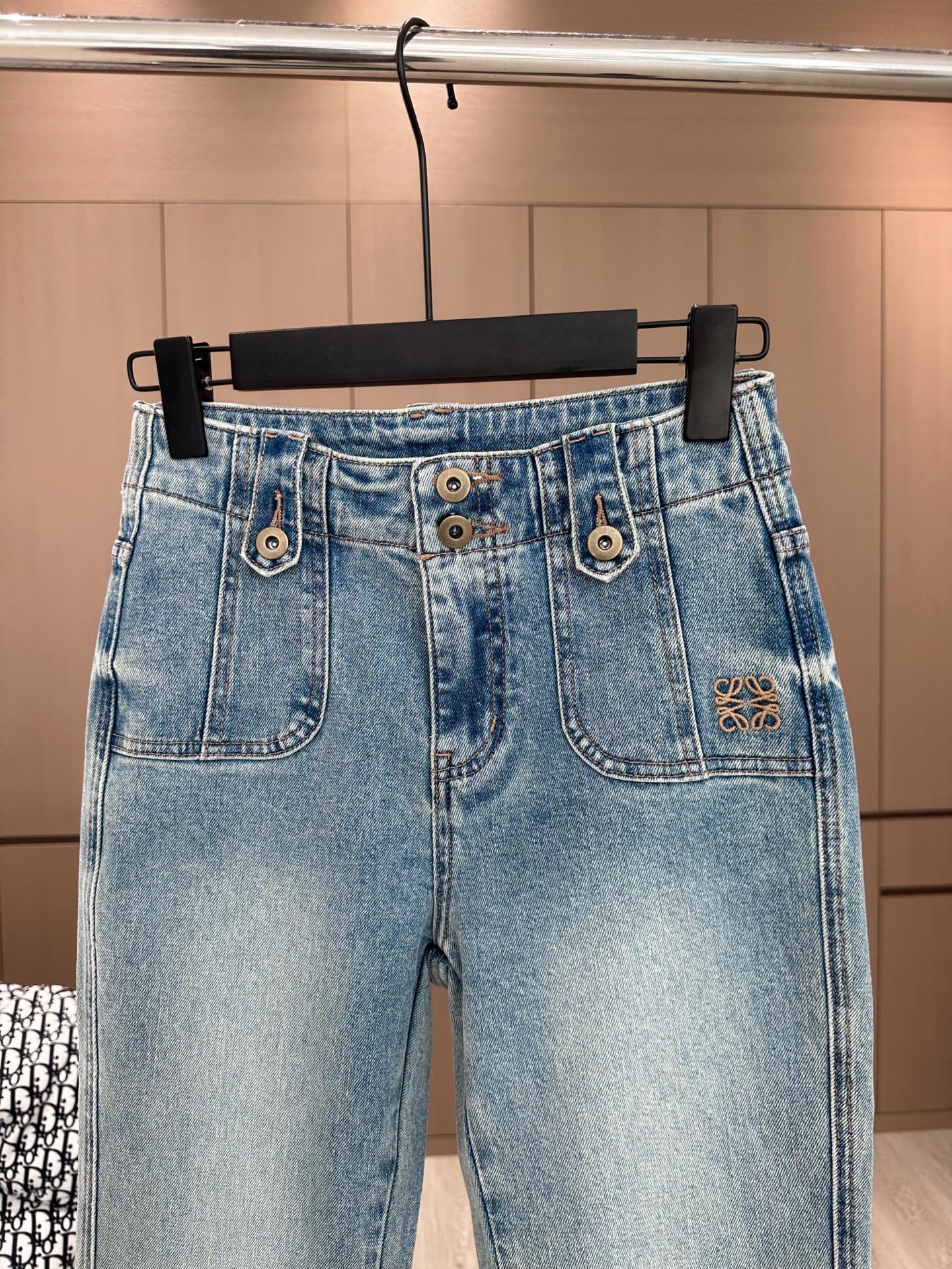 Loewe Embroidered Flared Jeans Blue Cotton