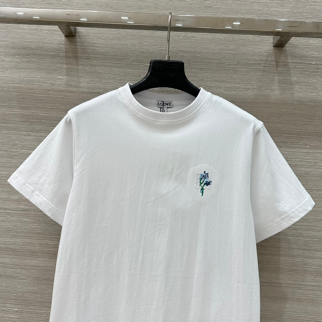Loewe Floral Embroidered Short-sleeved T-shirt White Cotton