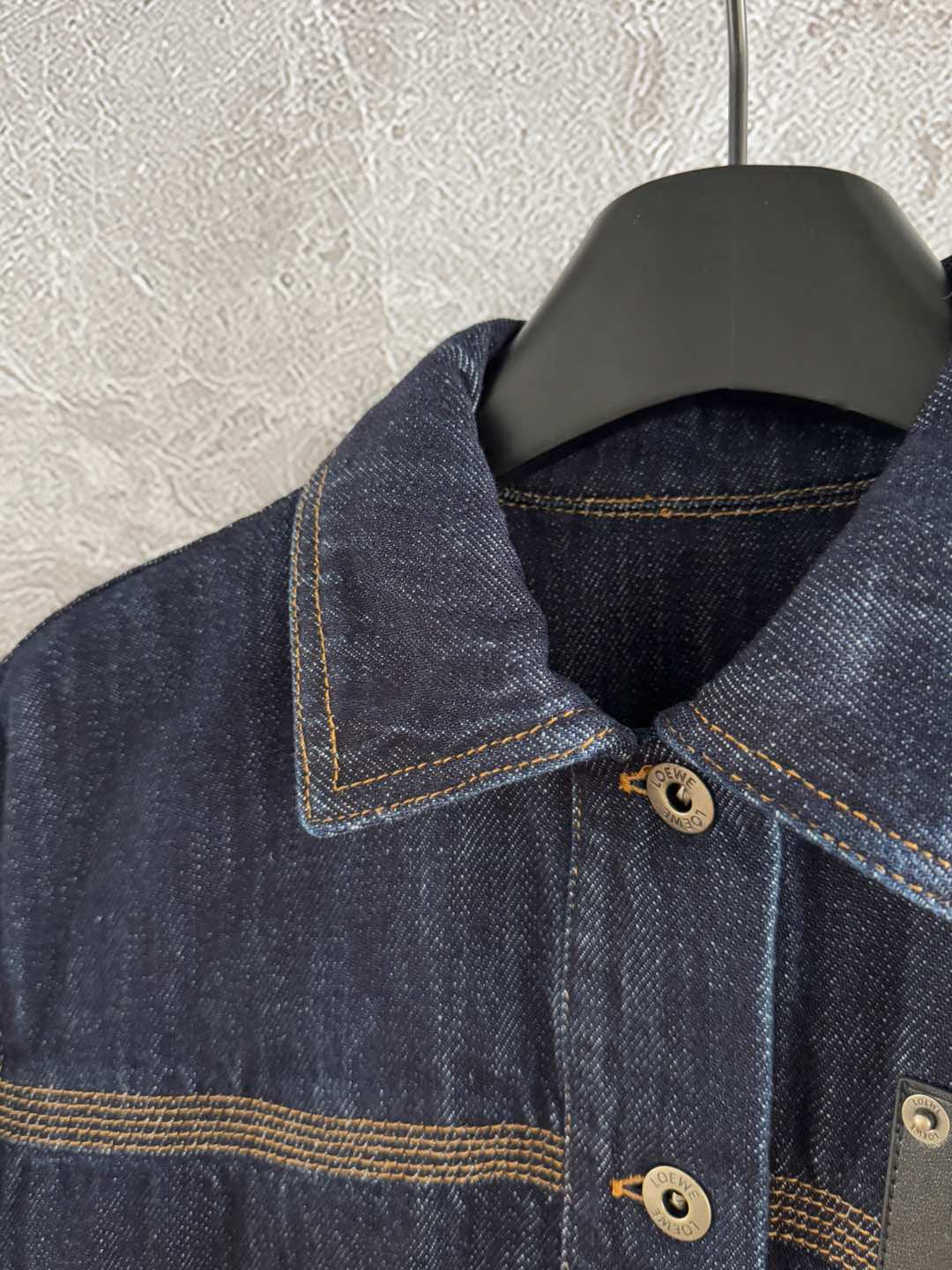Loewe Pocket Leather Jacket Dark Blue Denim Cotton