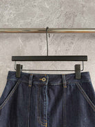 Loewe Pocket Leather Skirt Dark Blue Denim Cotton