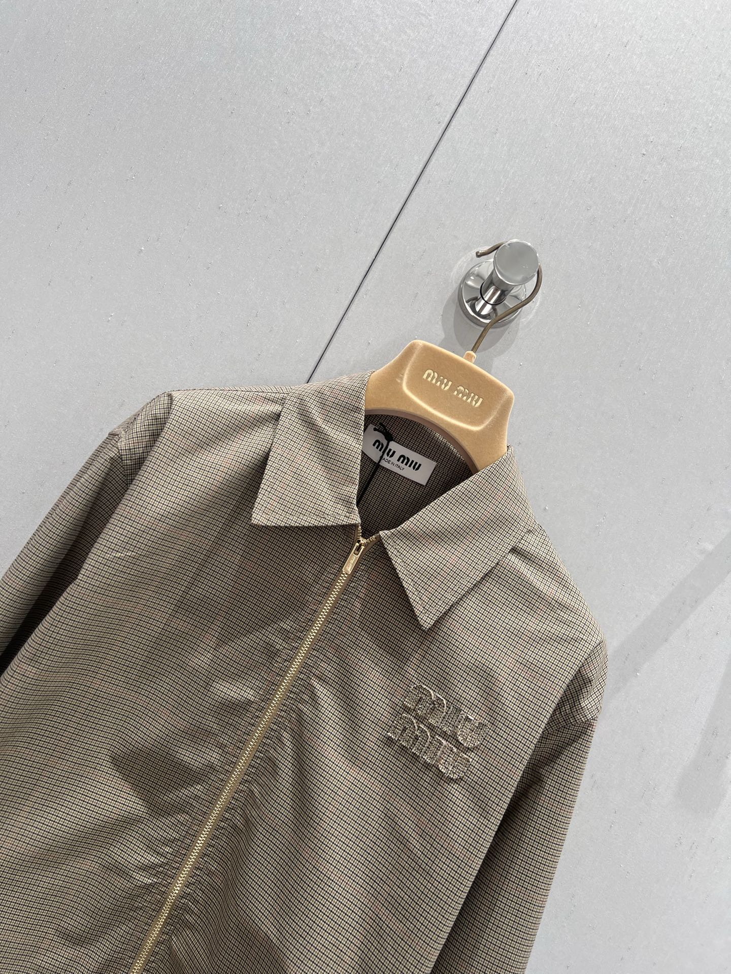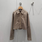 Miu Miu 25 Plaid Lapel Zipper Shirt Brown Cotton 211152