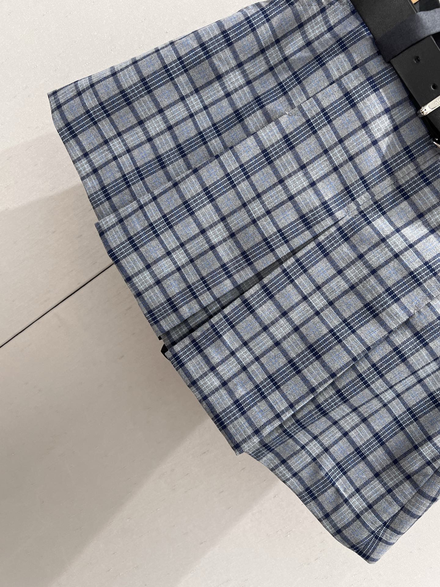 Miu Miu 25 Plaid Pleated Skirt Blue Polyester 211200