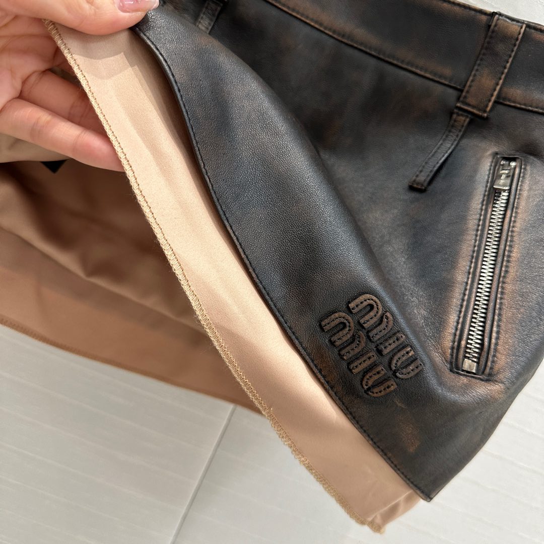 Miu Miu 25 Short Skirt Black Brown Sheepskin