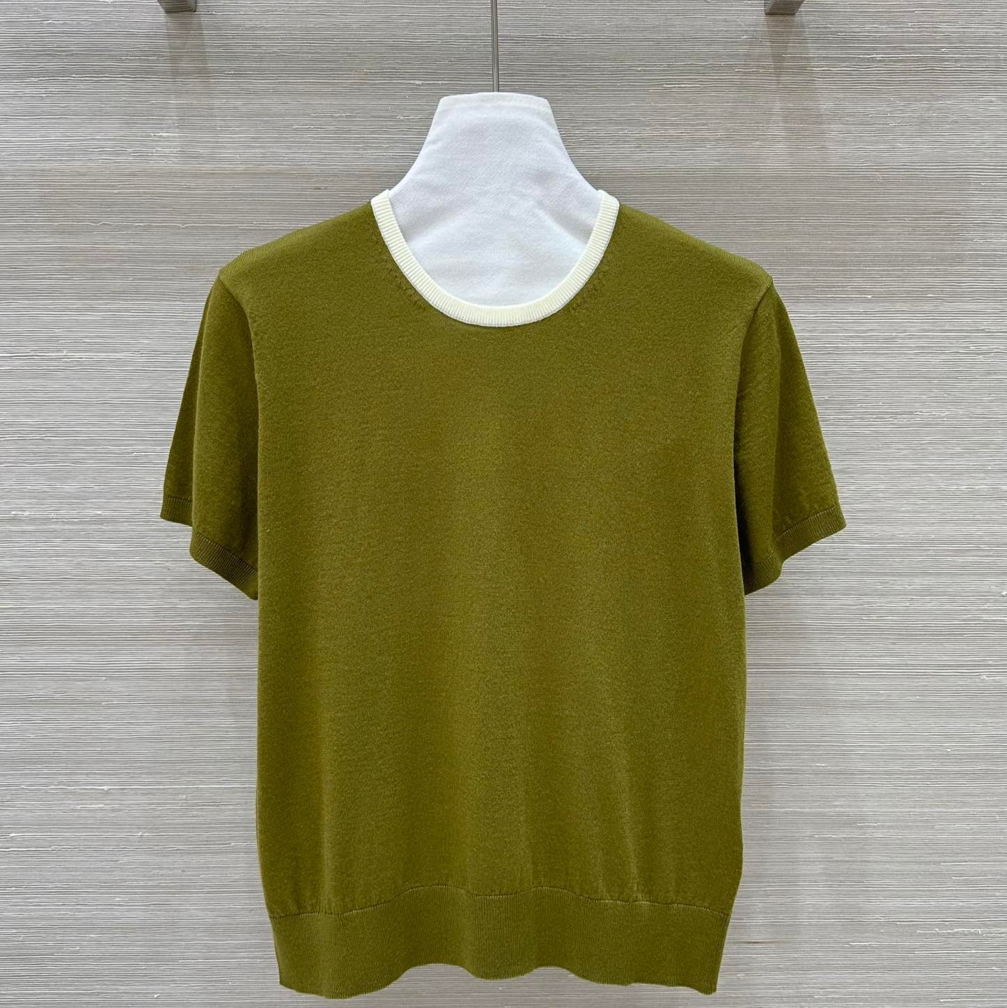 Miu Miu 25 Short-sleeve Top Olive Green Wool