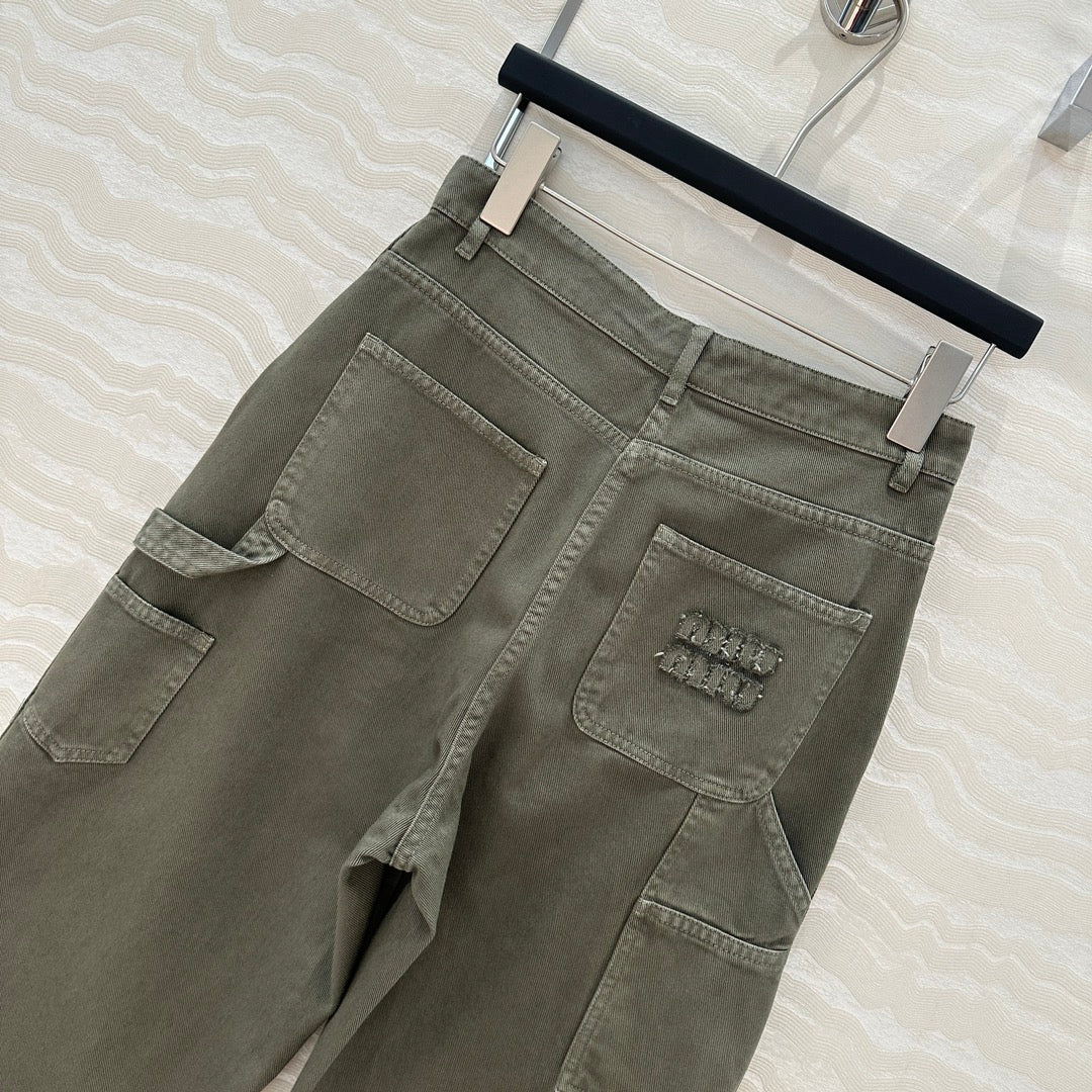 Miu Miu 25 Straight Pants Khaki Green Cotton