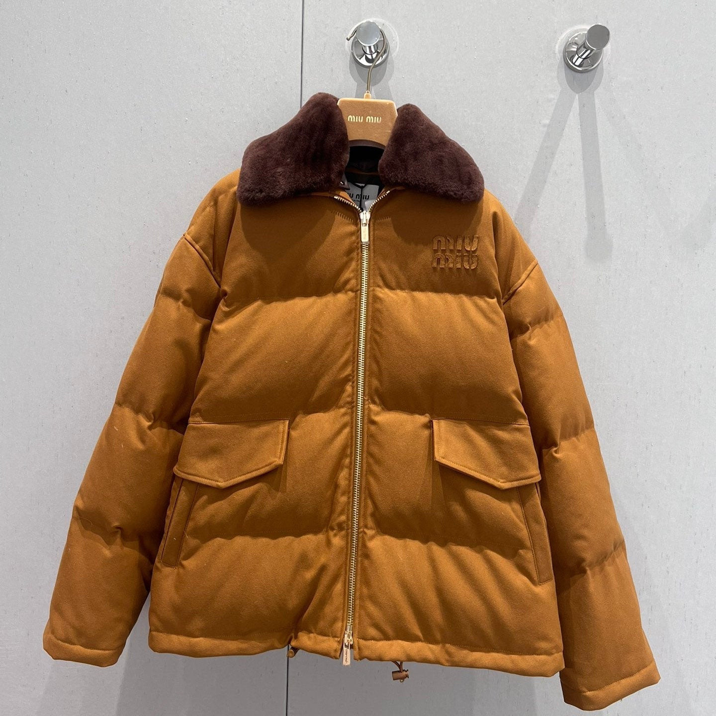 Miu Miu Collar Down jacket Camel Brown Polyester Fiber