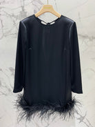 Miu Miu Ostrich Feather Dress Black Acetate Satin Fabric