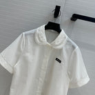 Miumiu 25 Double-layer Collar Shirt White Linen Cotton