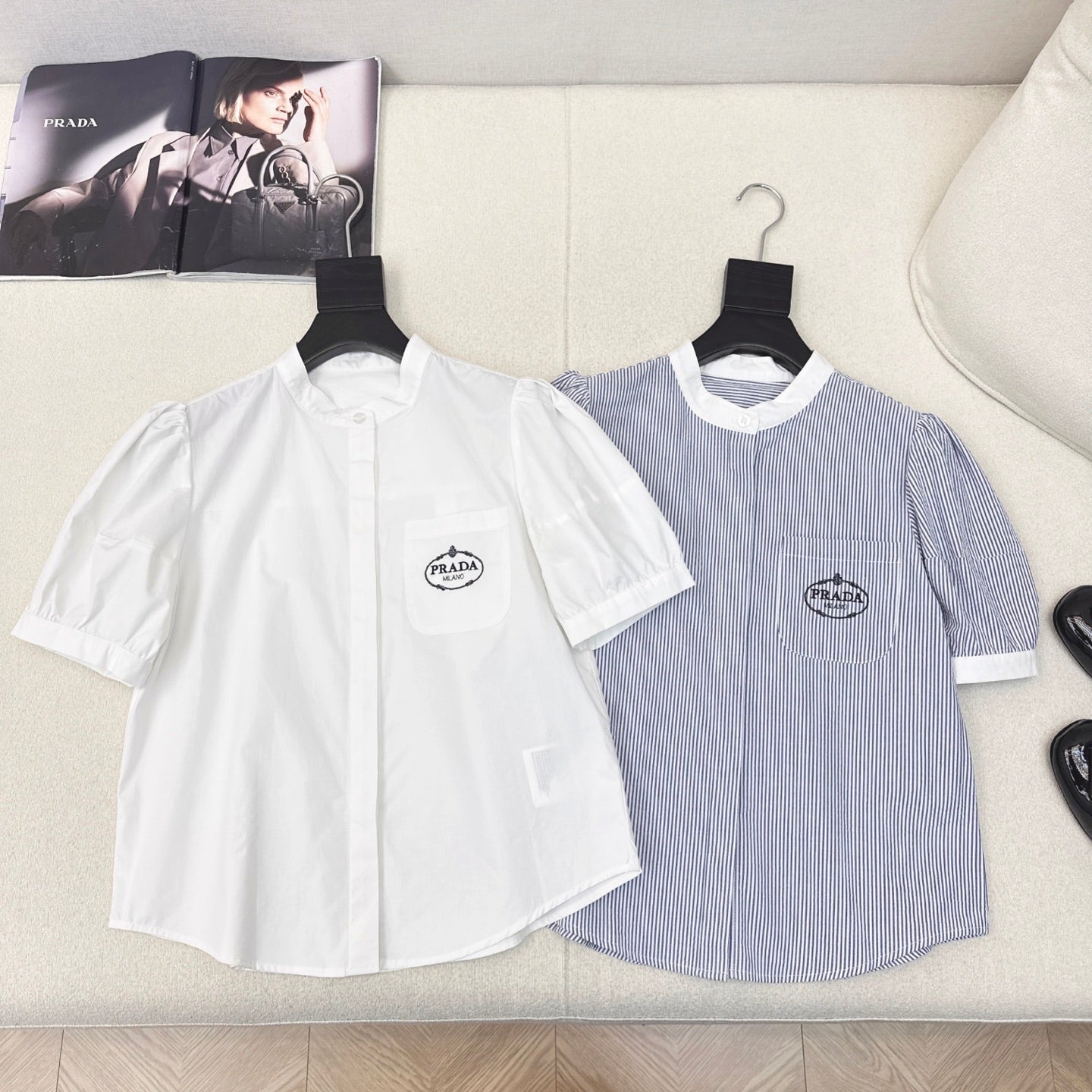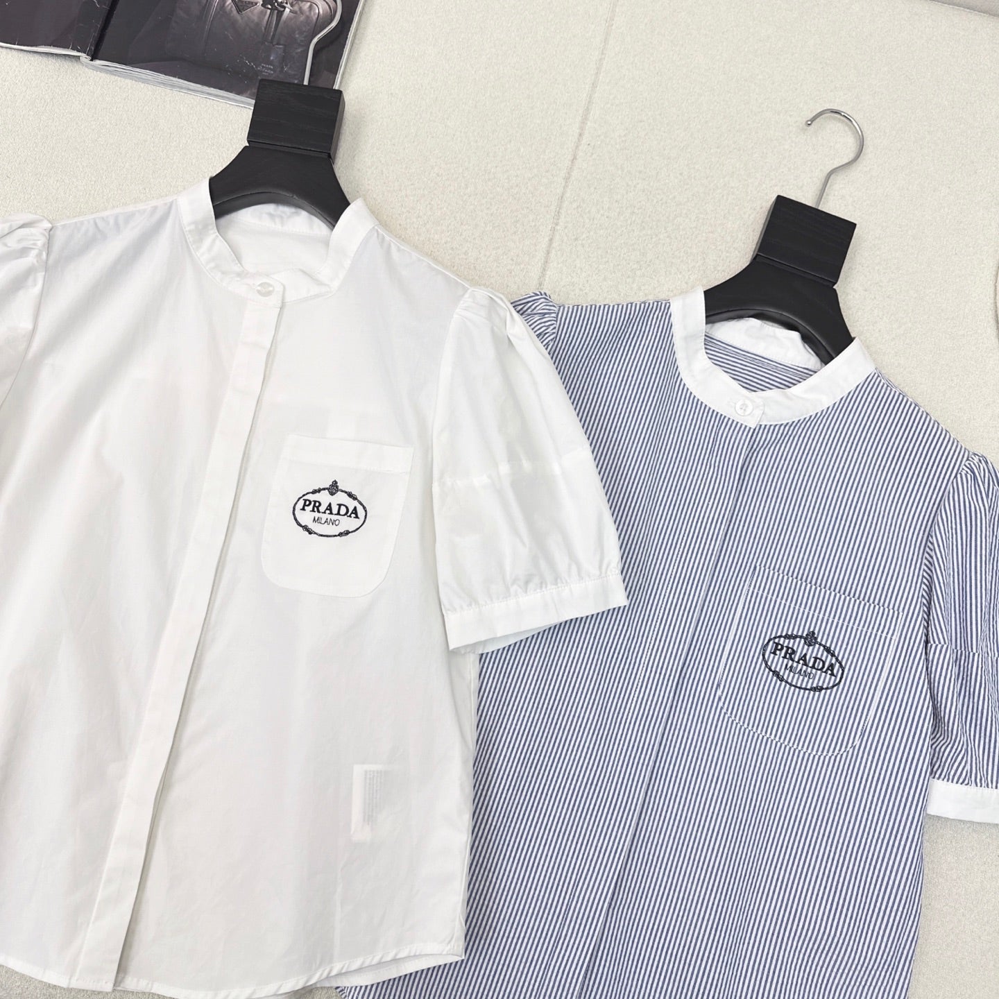 Prada 25 Logo Embroidery Shirt Cotton 614592