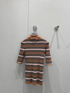 Prada 25 Striped Knitted Polo Short-sleeved Top Brown mix Black Cotton Poliamide 217945