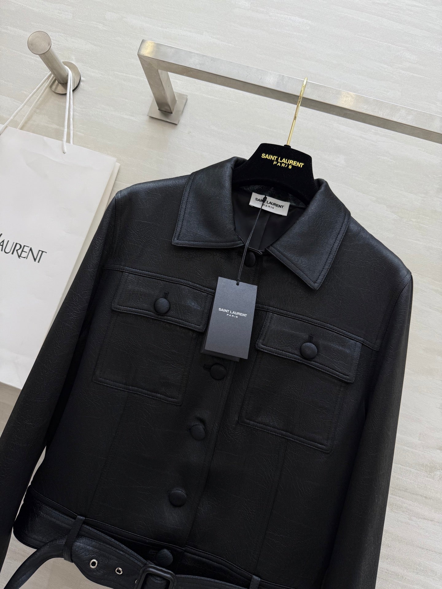 YSL 25 Cracked Pleated Jacket Black Acetate