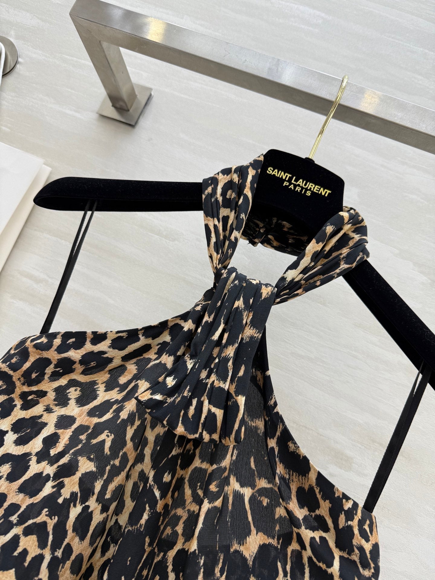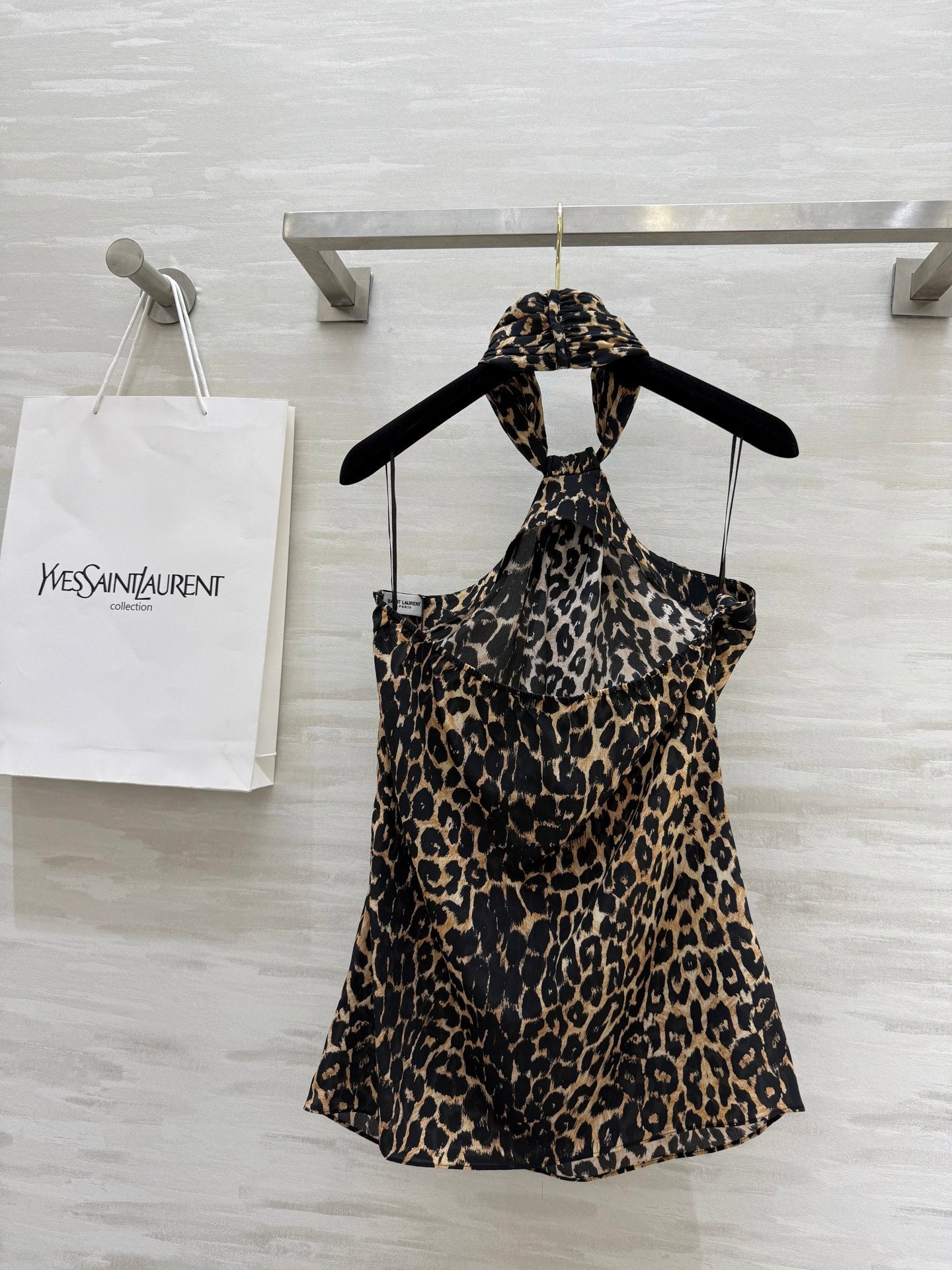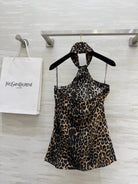 YSL 25 Halter-neck Suspender Vest Leopard Silk