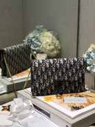 CD Saddle Pouch With Chain Blue Obique Embroidery