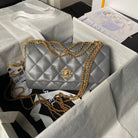 24a classic flap bag 26cm grey lambskin gold hardware
