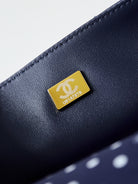 24p medium flap bag 25cm dark blue canvas white polka dot