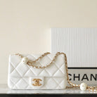 cc 24s mini flap bag 20cm white lambskin pearl ball