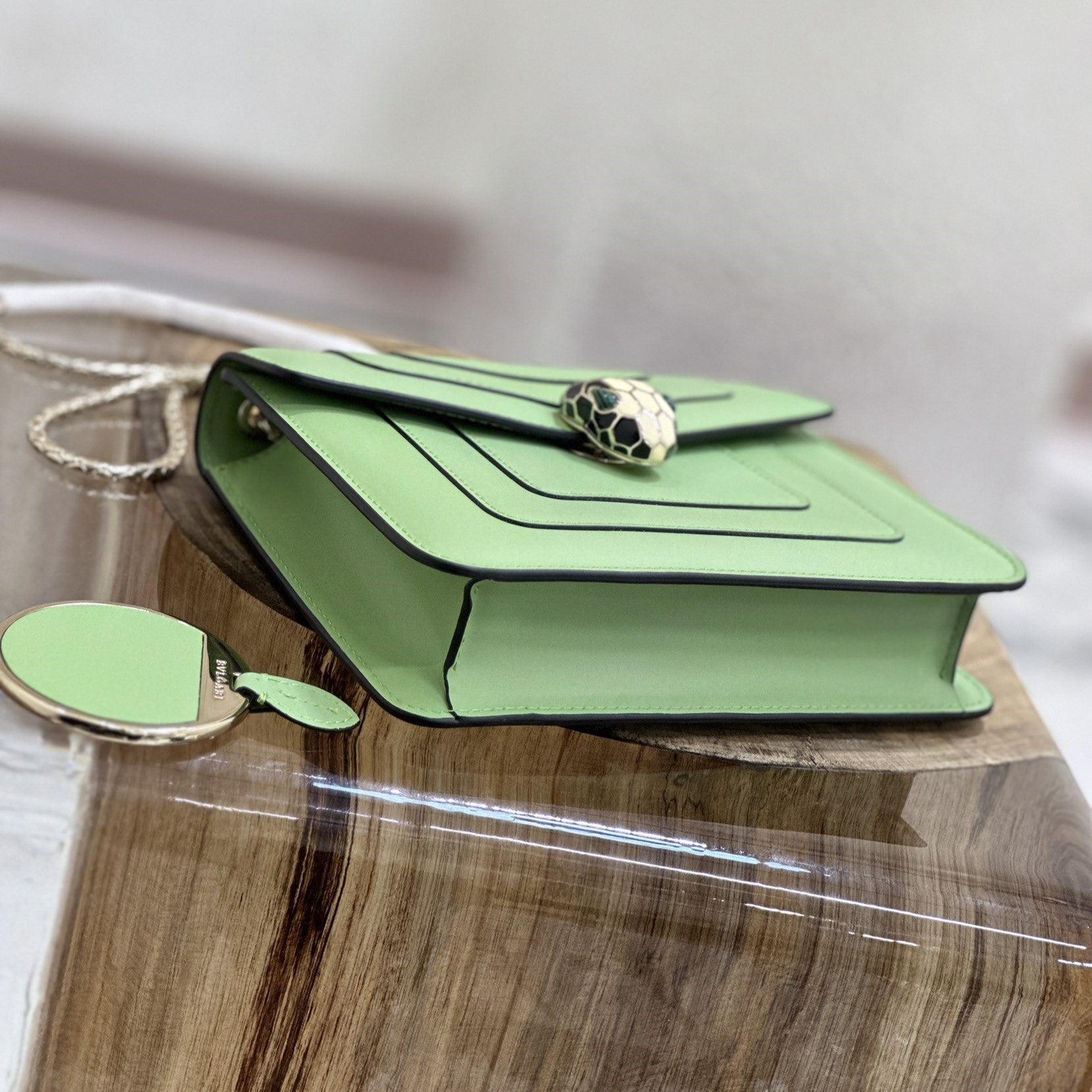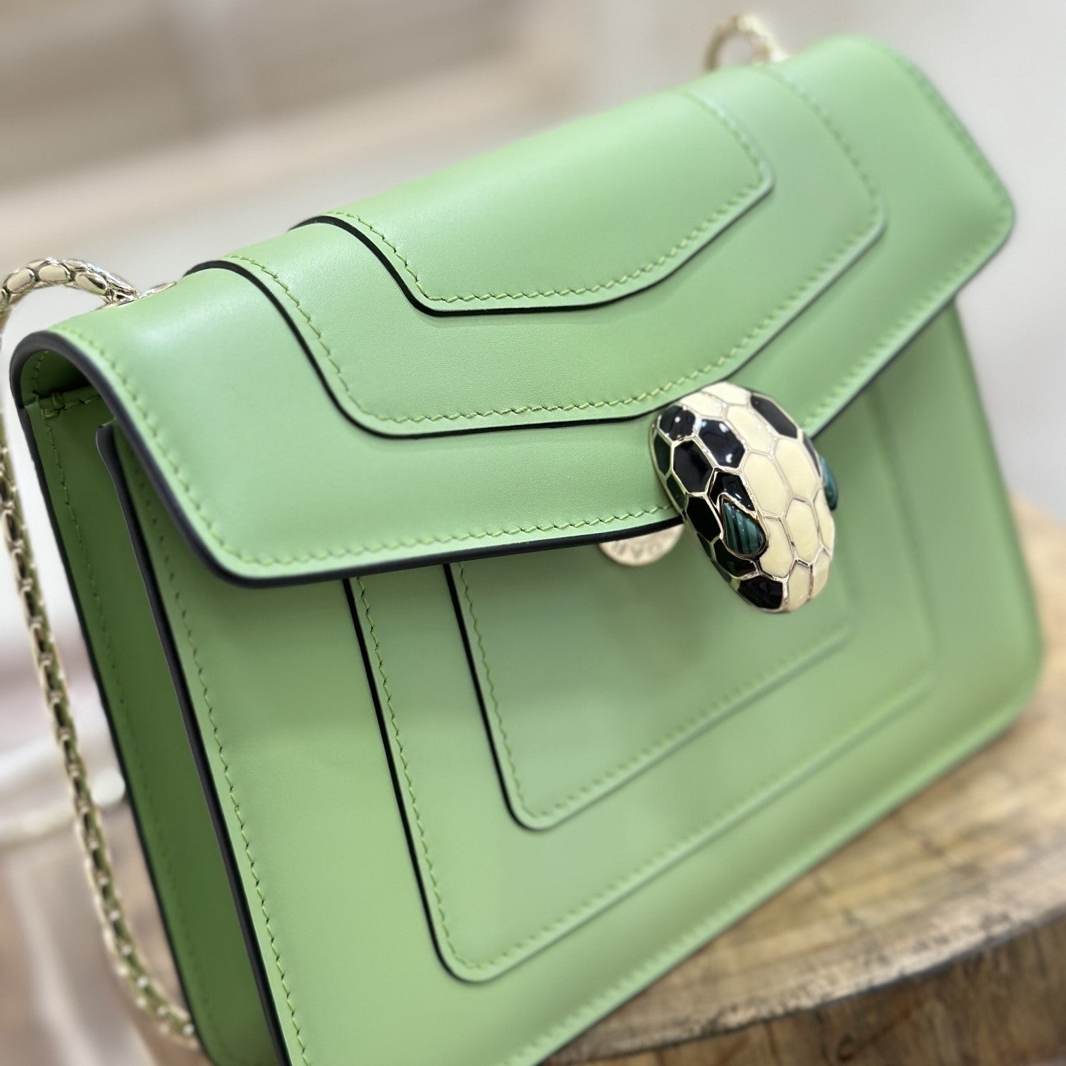 - Serpenti Head: Light Gold-Plated Brass, Black Enamel, White Enamel