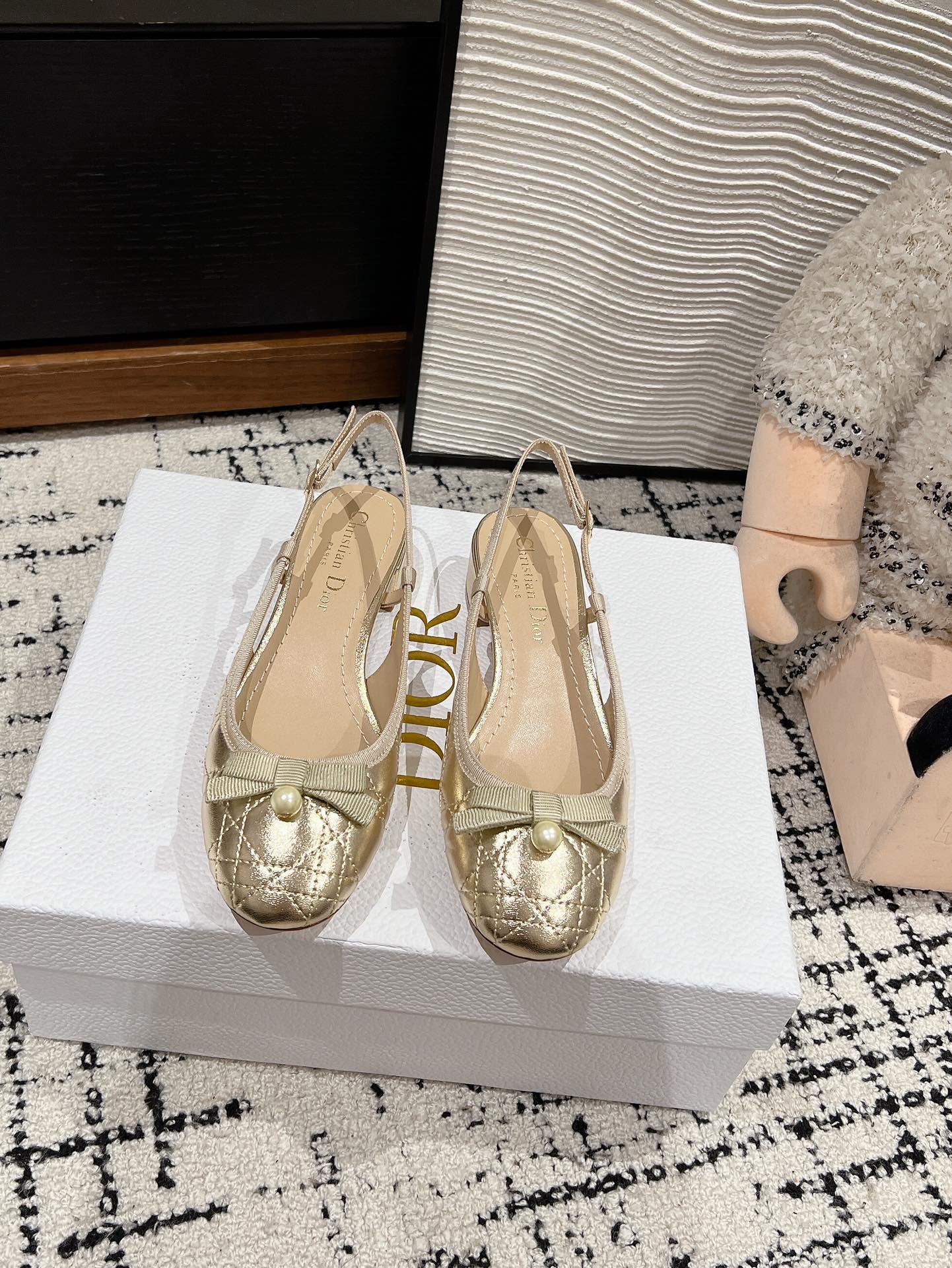 CD Ballet Slingback Pump 30mm In Gold Quilted Calfskin 997041