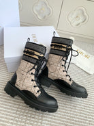 CD D-Major Ankle Boot In Dark Beige Mix Black Canvas With Fleece Lining 105072