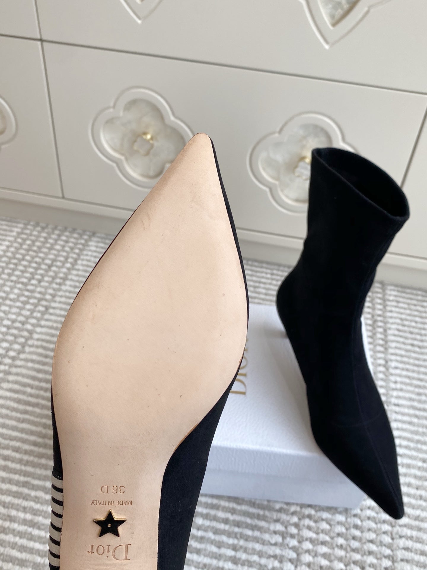 Dior 2025 Tribales Heeled Ankle Boot 50mm Black mix White Suede 501189