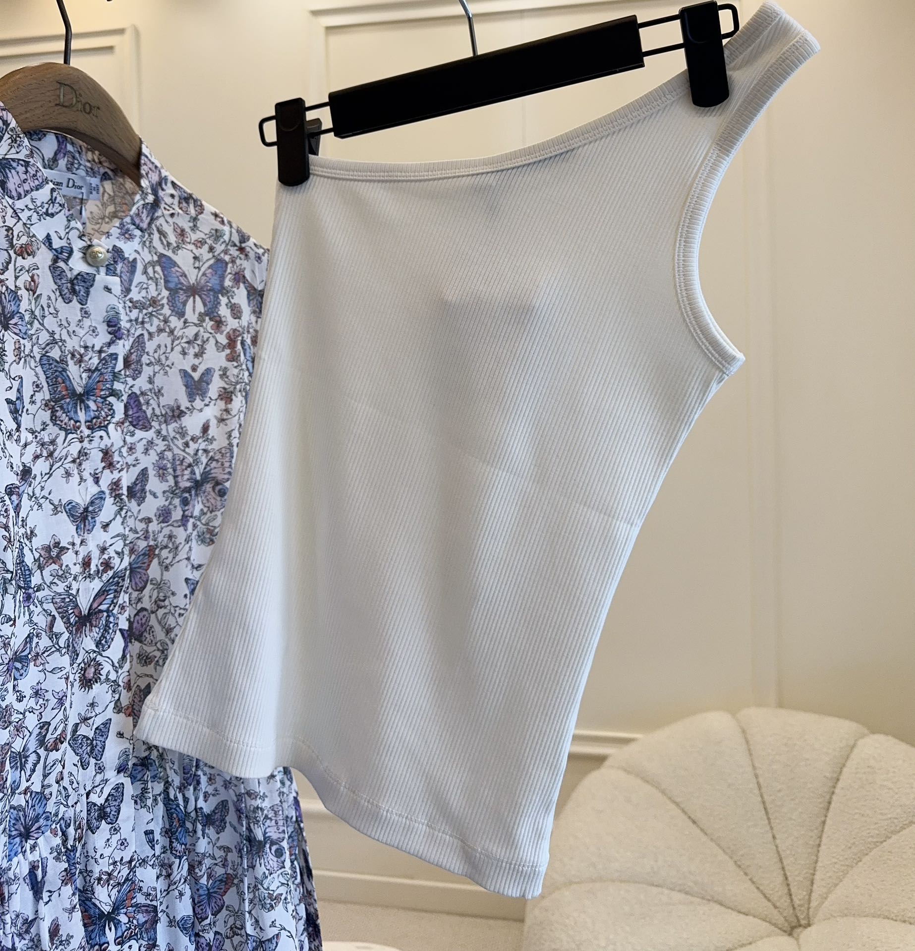 CD 2025 Asymmetrical Off-shoulder Vest White Cotton