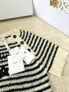 CD 2025 Striped Knitted Short Sleeves Beige mix Black Cotton