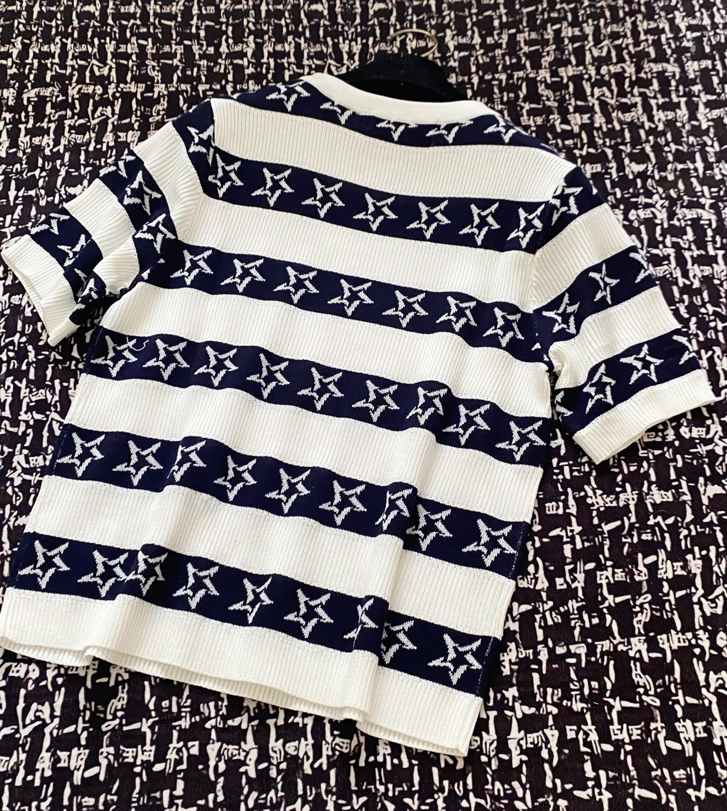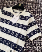 CD 2025 Striped Short-sleeved T-shirt Navy Blue White tencel 606658