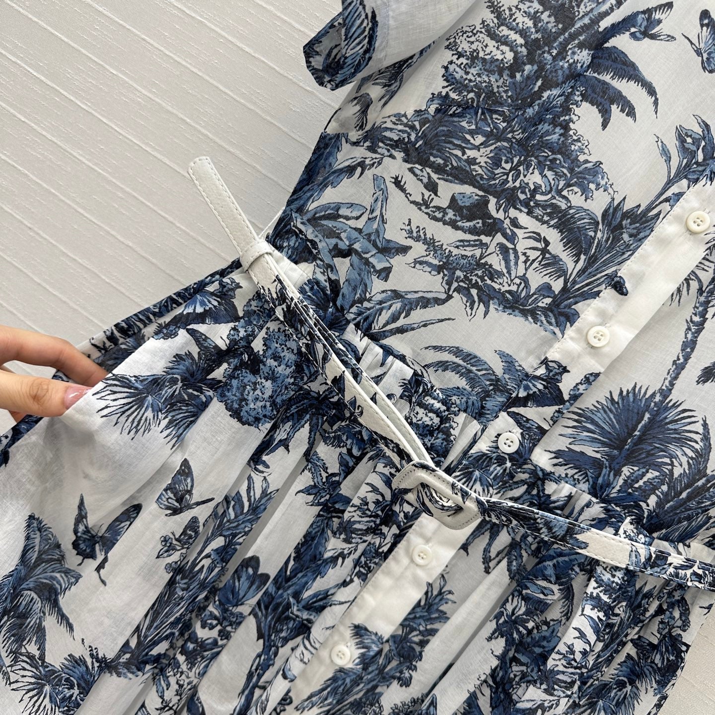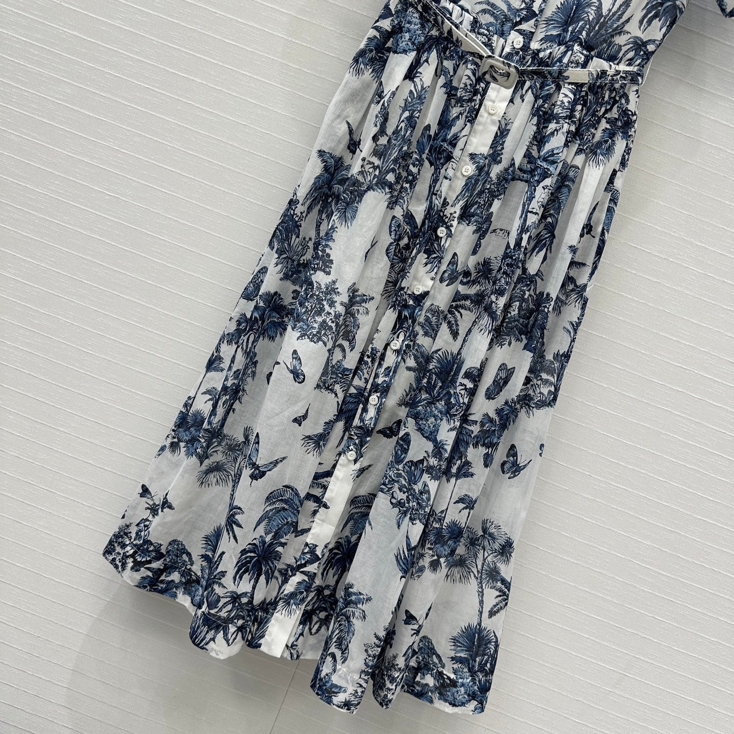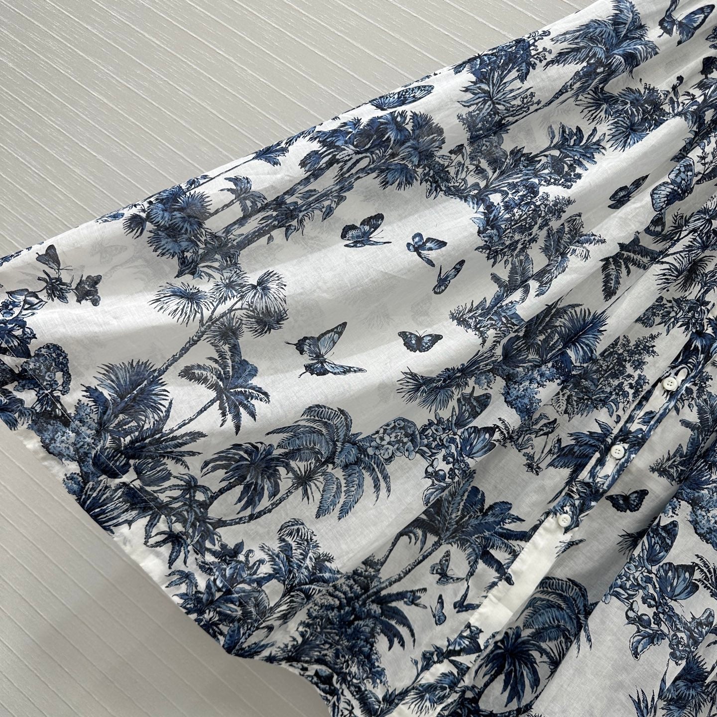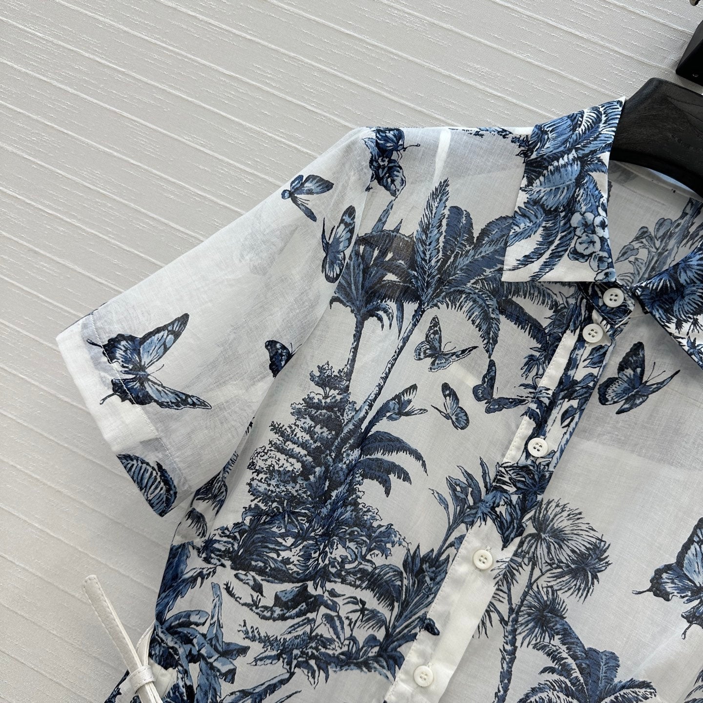 CD 25 Butterfly Coconut Print Shirt Dress White Blue Cotton