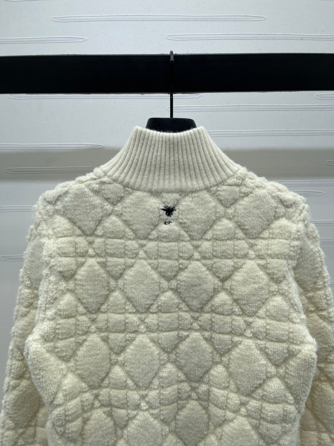 CD 25 Cardigan Stand Collar Light Beige Wool
