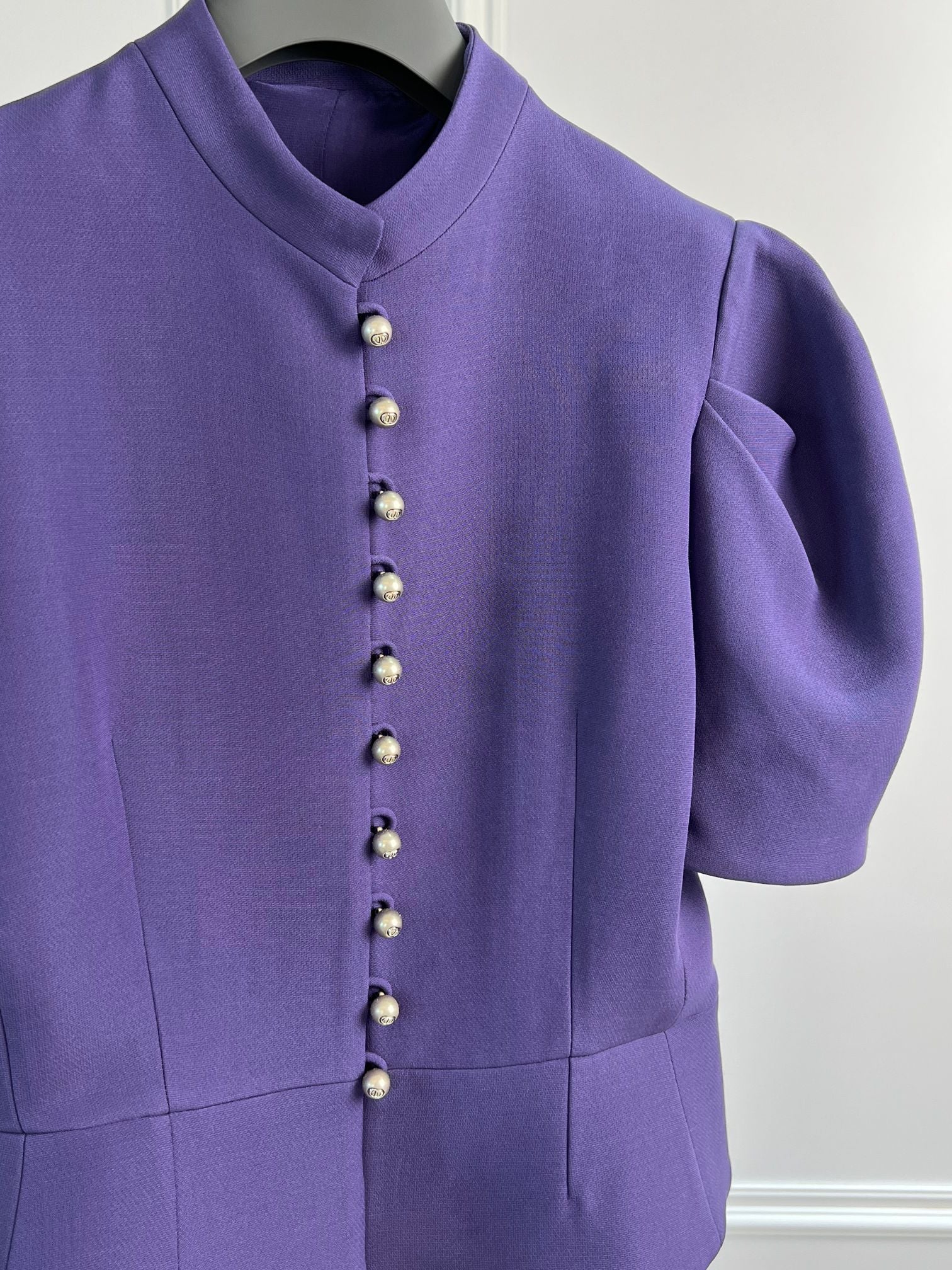CD 25 Fitted Short-sleeved Jacket Purple Wool Silk