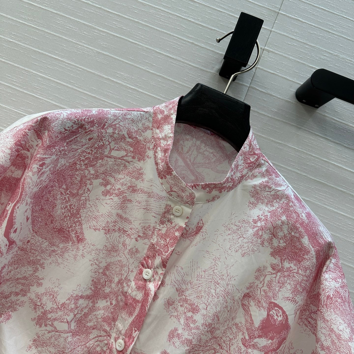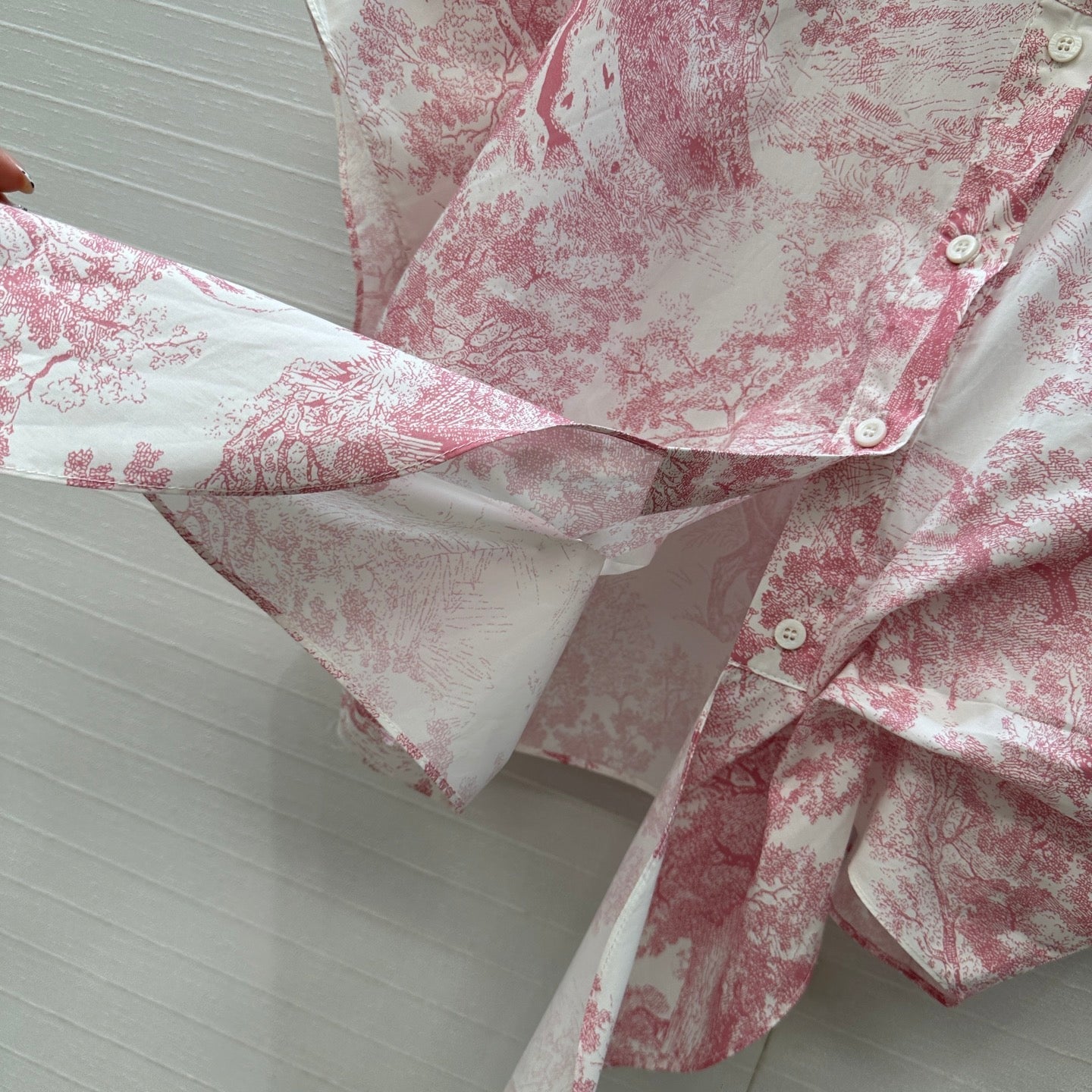 CD 25 Flying Sleeve Short Shirt White Pink Cotton