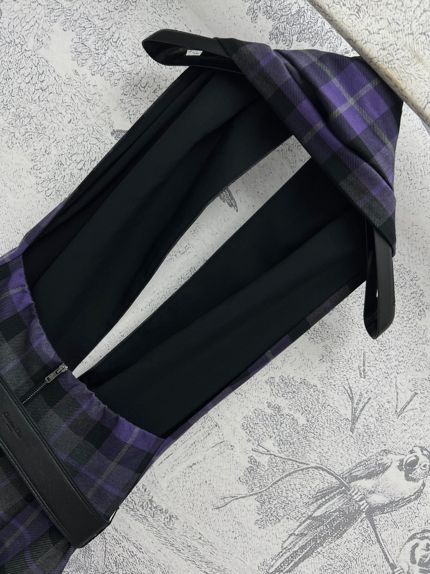 CD 25 Halter-neck Backless Dress Purple Black Wool Fabric