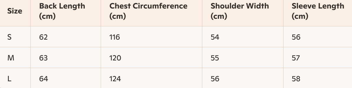 - For more information, please see the size guide below
