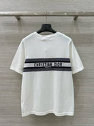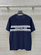 CD 25 Knitted Short-sleeved Top Blue and White Cotton