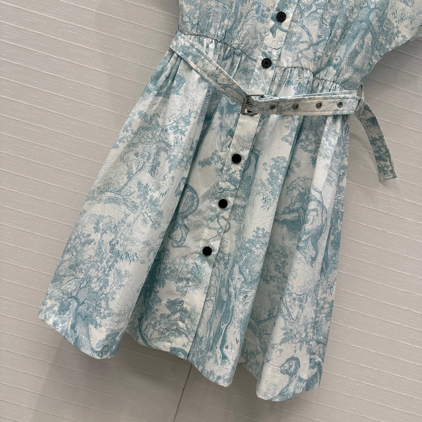 CD 25 Sauvage Jouy Print Button Dress Light Blue mix White Cotton