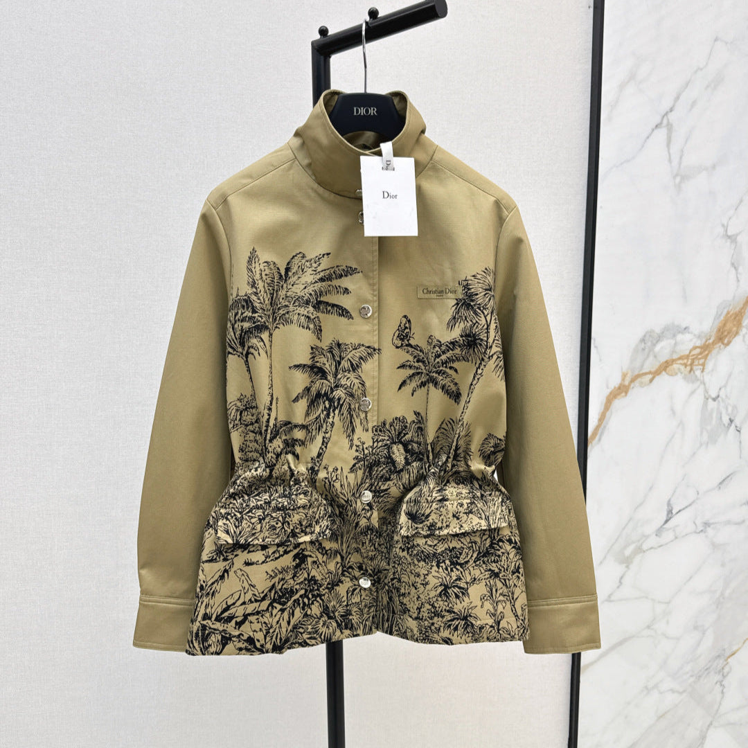 CD 25 Stand collar windbreaker with tree print