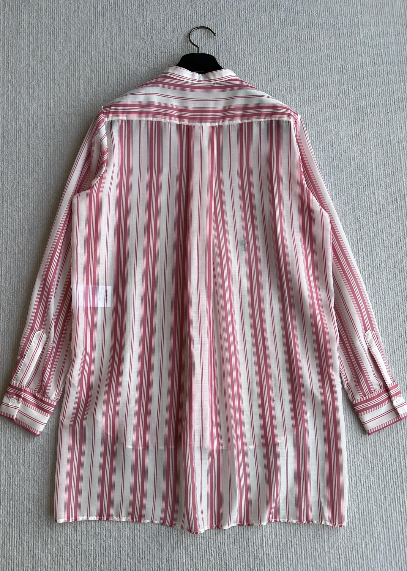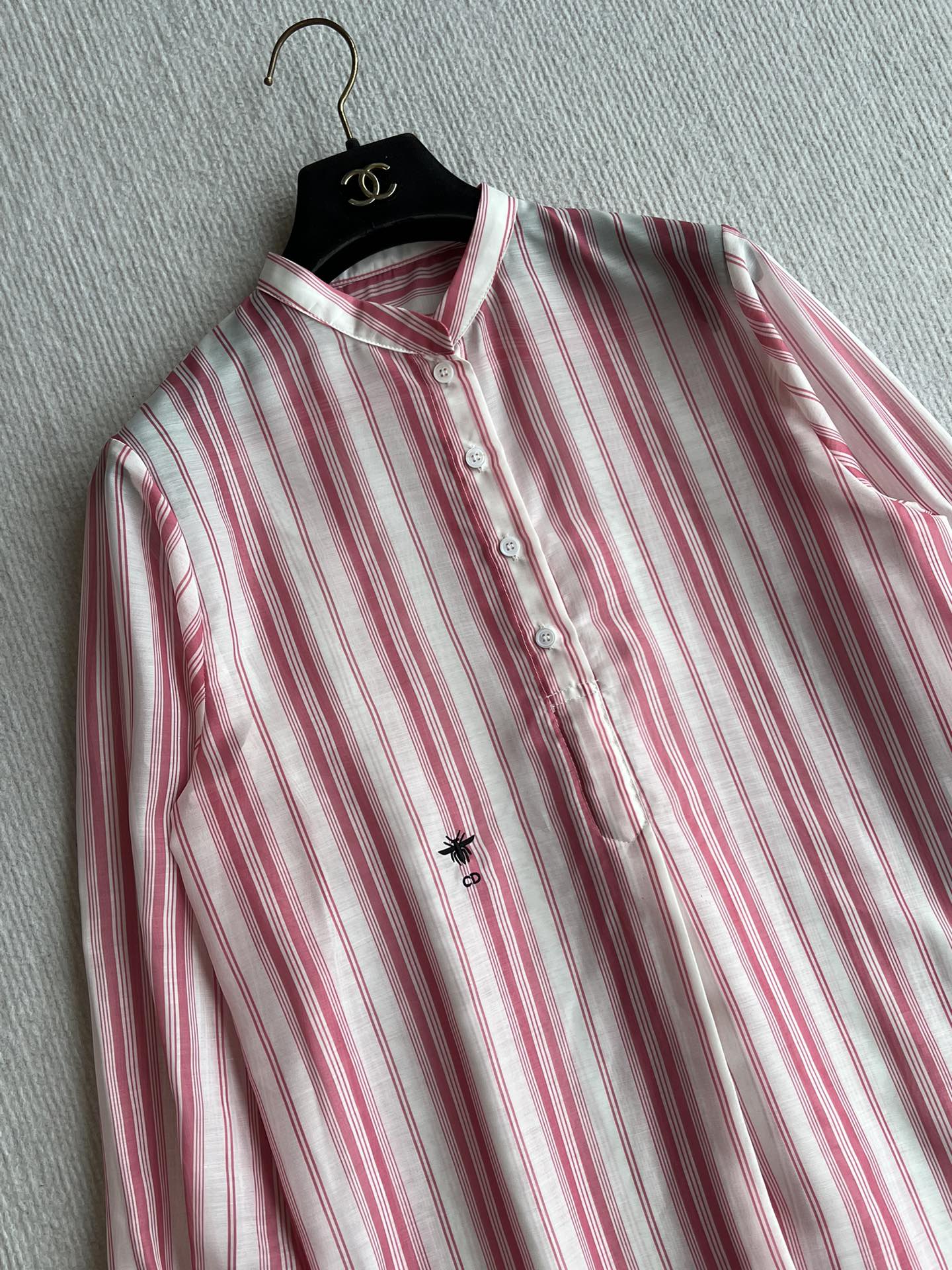 CD 25 Striped Shirt Pink White Cotton