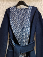 CD Hooded Long Coat Navy Blue Wool Silk