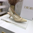 JAdior slingback pumps 65 transparent mesh beige embroidered cotton
