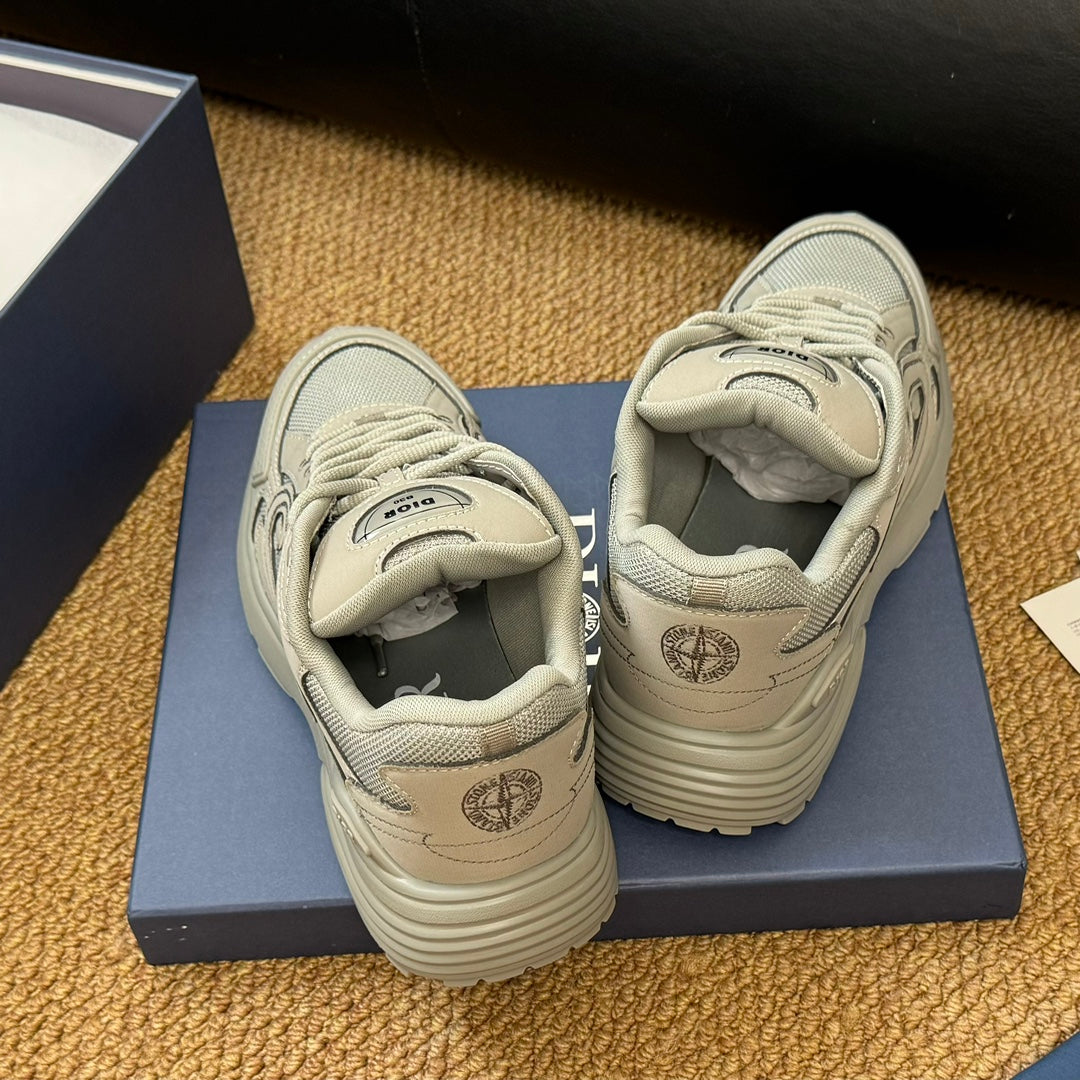 CD And Stone Island B30 Sneaker Light Beige Cowhide And Polyester Mesh Fabric