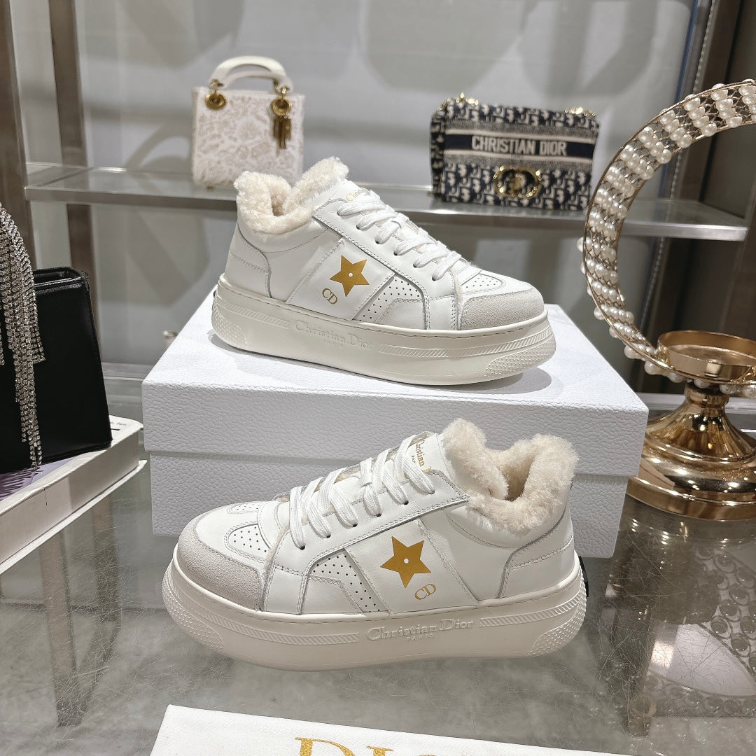 CD Dior Star Platform Sneaker In White Cowhide 996422