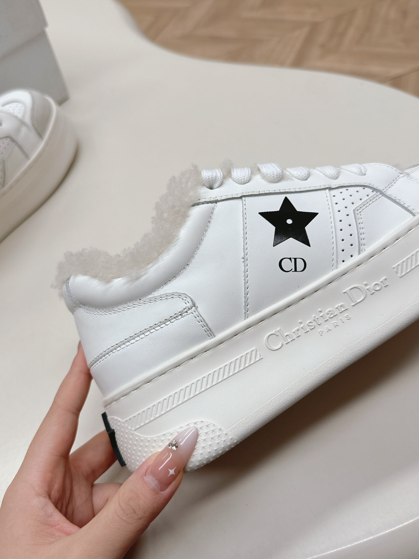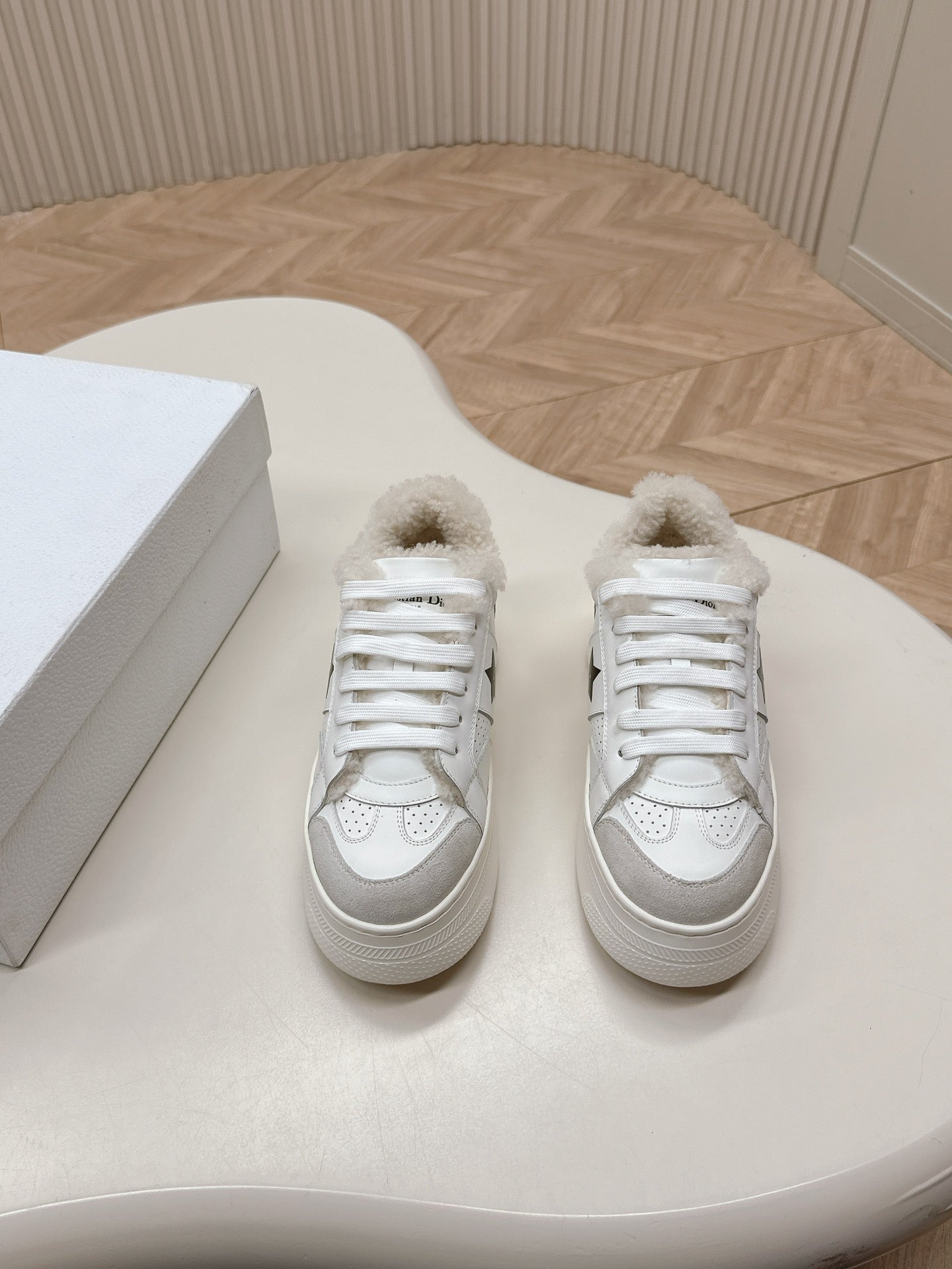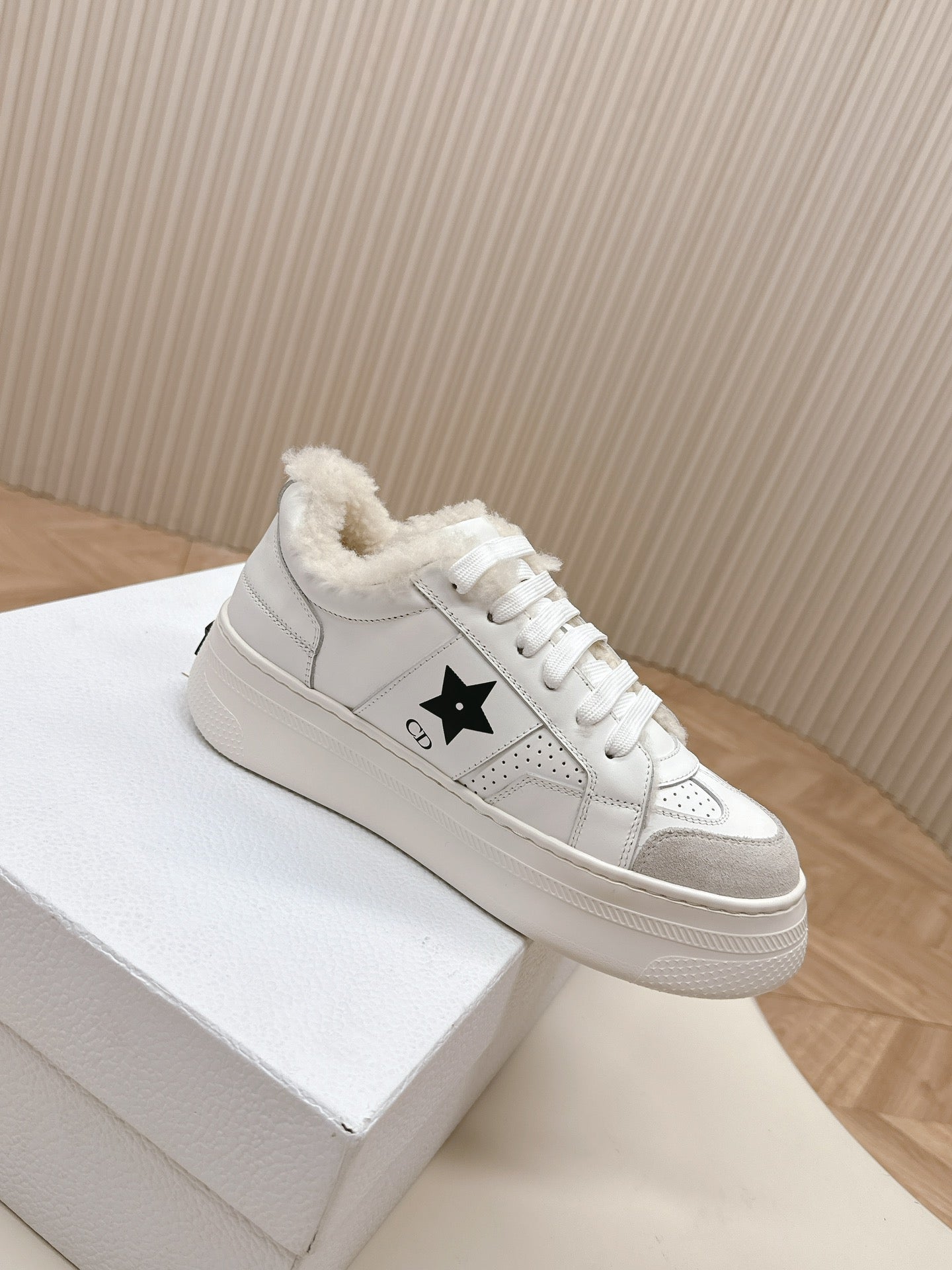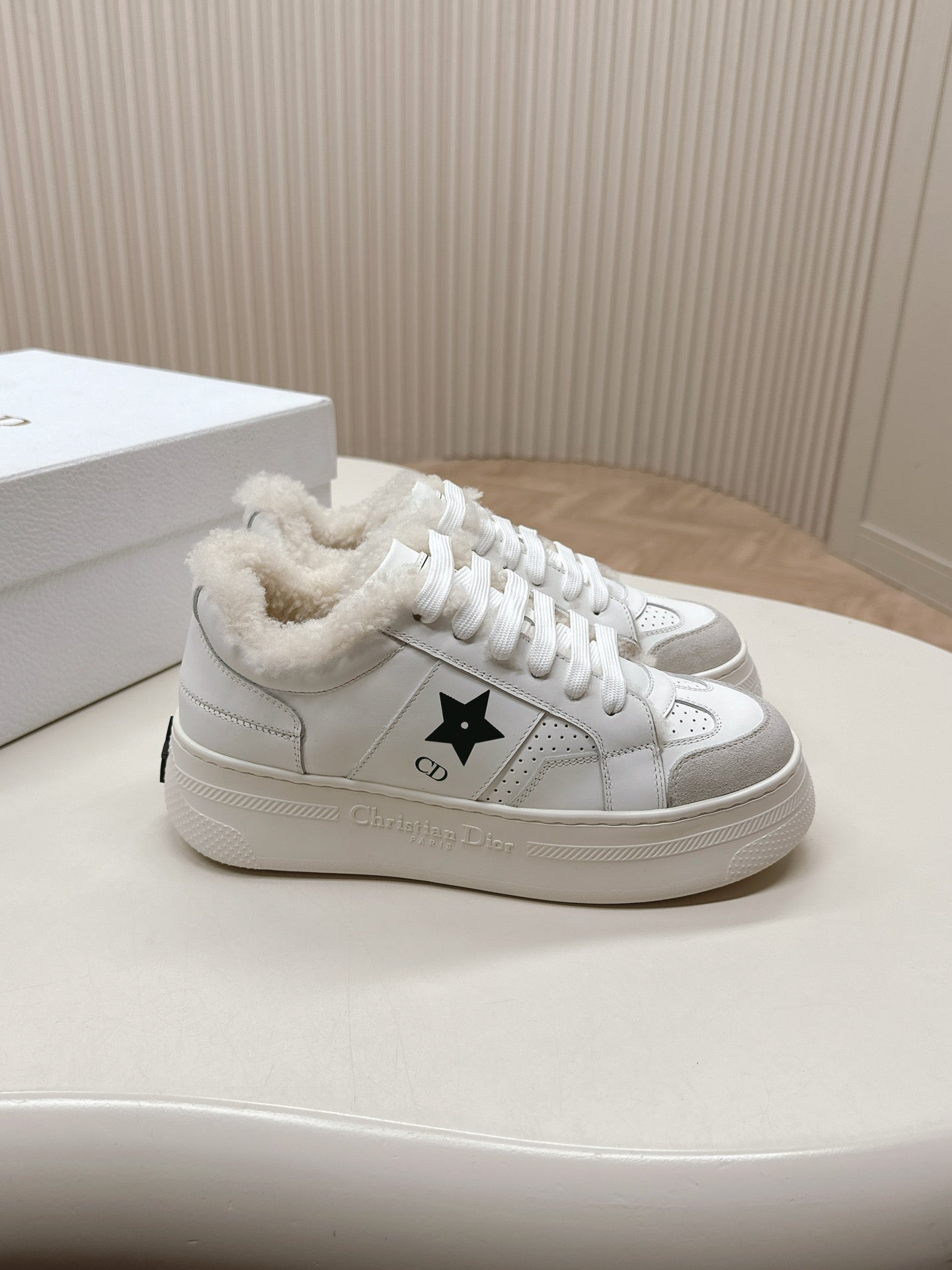 CD Dior Star Platform Sneaker Fleece Lining White Lambskin And Suede