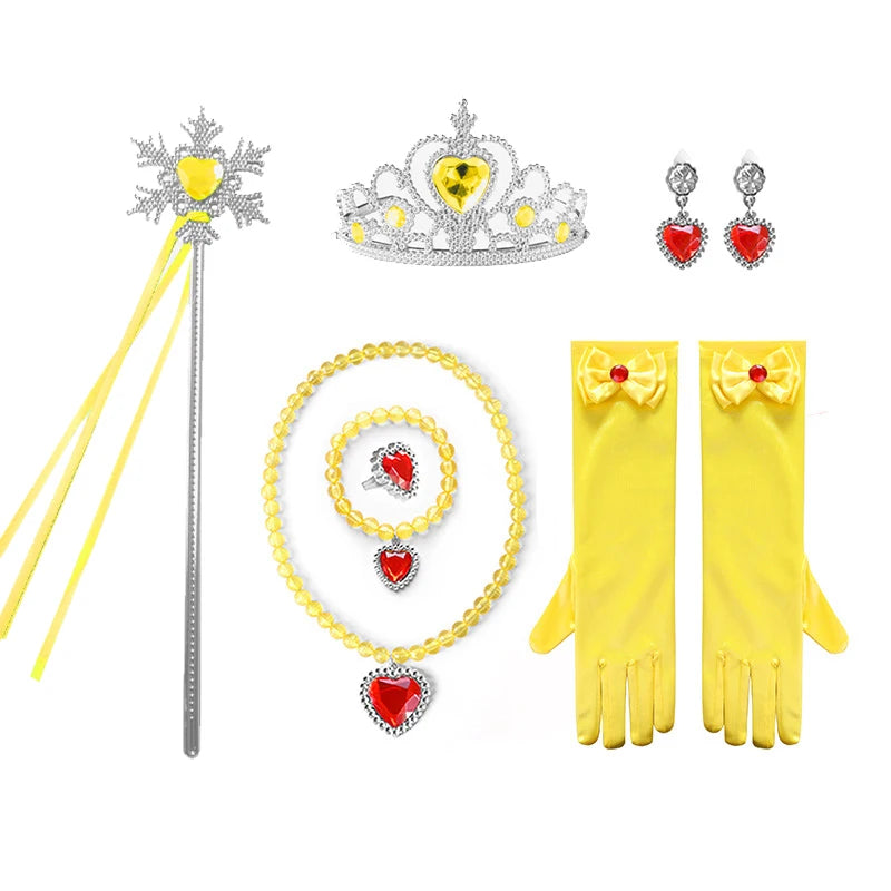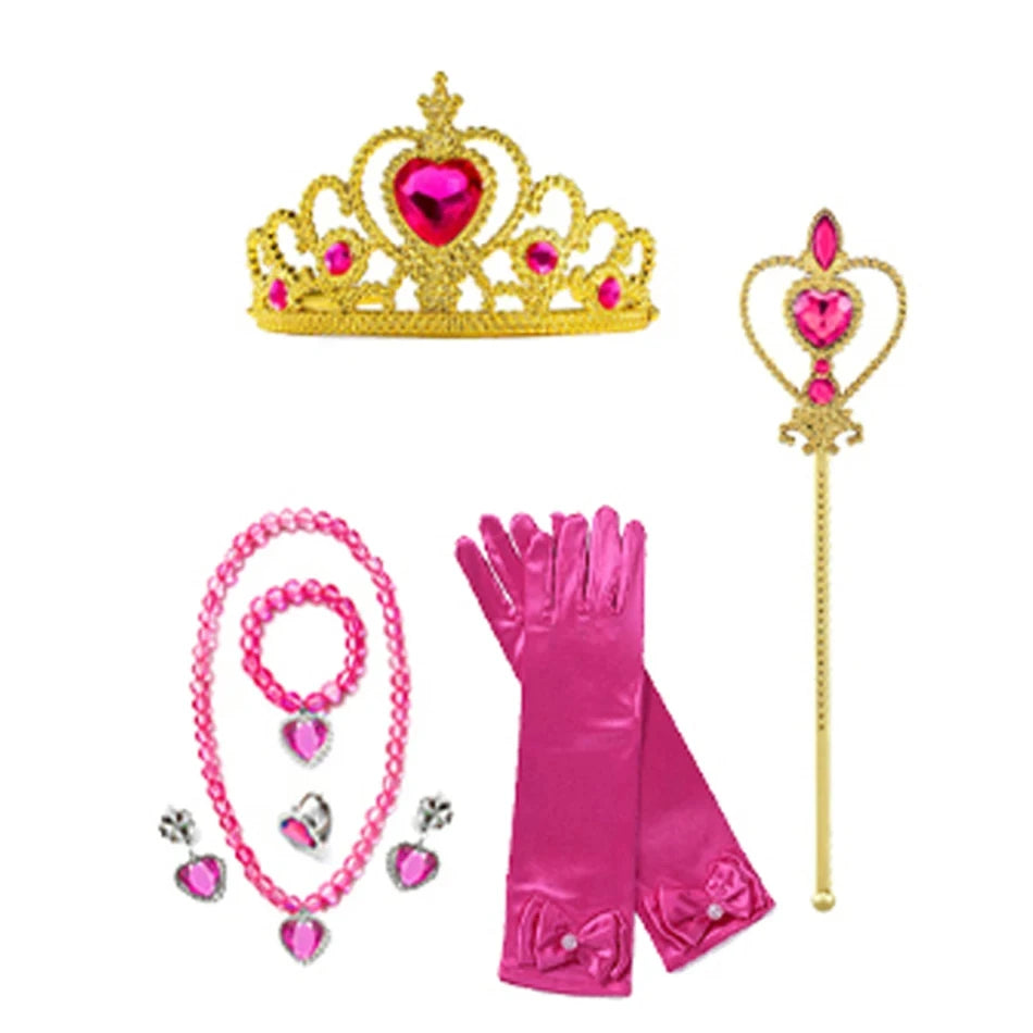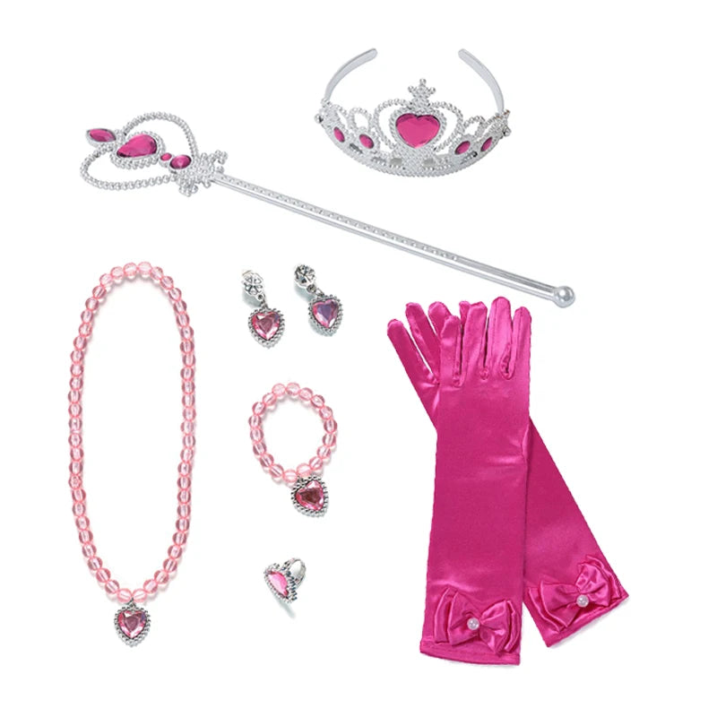 Bowknot Gloves Crown Wand Necklace Bracelet Accessories for Princess Dresses Kids Gift
