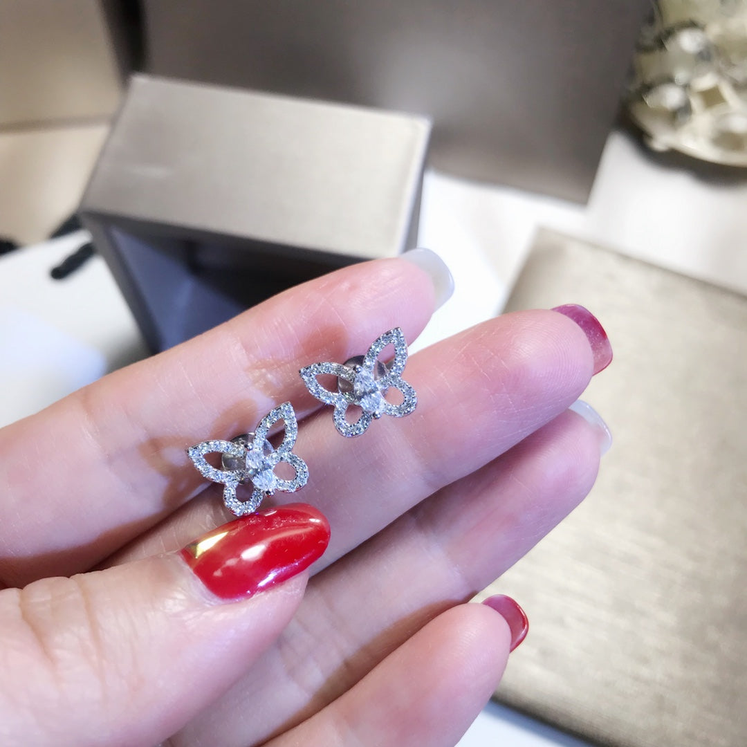 BUTTERFLY SILHOUETTE MINI SILVER DIAMOND EARRINGS