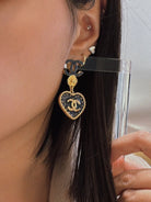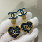 cc heart blue denim drop earrings