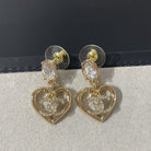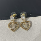 cc strass crystal heart drop light gold earrings