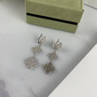 CLOVER 3 MOTIF DIAMOND SILVER DROP EARRINGS
