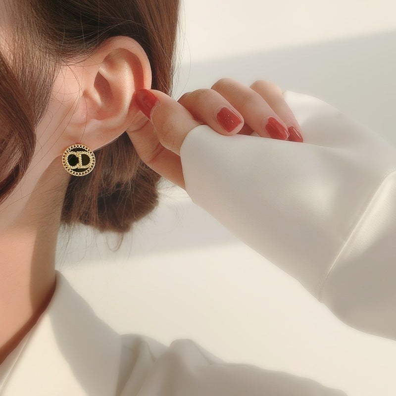 DOUBLE STUD DOUBLE C DIAMOND GOLD EARRINGS